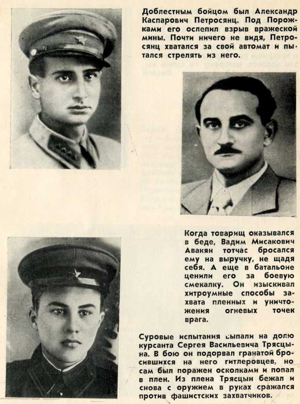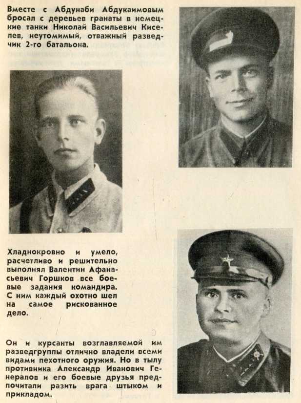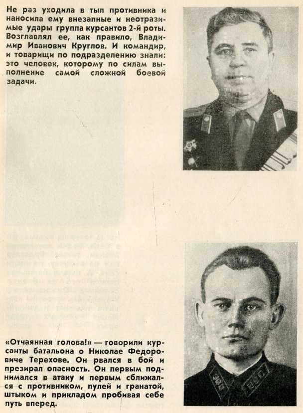 Под стать Николаю был курсант первой роты Андрей Константинович Шовкопляс. Коренастый, ладно сложенный молодец, он накануне Великой Отечественной успел повоевать с белофиннами. К мнению Андрея в батальоне прислушивались не только курсанты, но и командиры. Все старались попасть в разведку вместе с ним…
