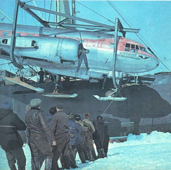 При благоприятном прогнозе погоды с судна выгружают самолеты, вертолеты, начинаются полеты на материк.