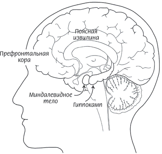 Когда мы влюблены, наше сердце бьется быстрее и кажется, будто чувства сконцентрировались на той части бедра, где лежит рука любимого. Однако влюбленность не находится ни в бедре, ни в сердце – она в мозге. Где именно в мозге находятся различные эмоции – пока не вполне ясно, но общая схема вырисовывается. Несколько структур, расположенных в глубине мозга, со всех сторон вокруг мозгового моста, называются, как уже говорилось, лимбической системой, и принято считать, что эмоции находятся именно там.