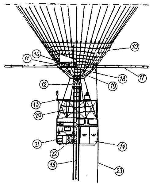 12?место крепления гайдропов, 13 — кольцо для крепления приборов,