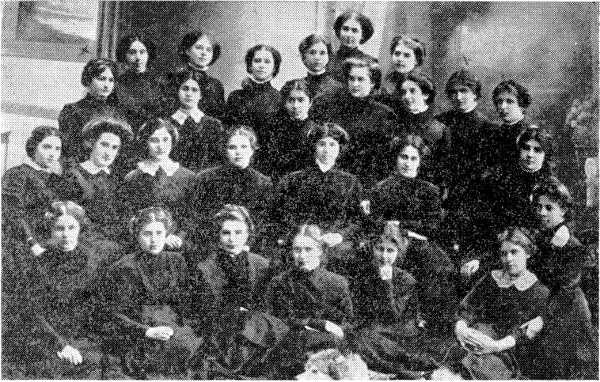 Выпускной класс Черниговской женской гимназии. В первом ряду сидит пятая слева Соня Соколовская.