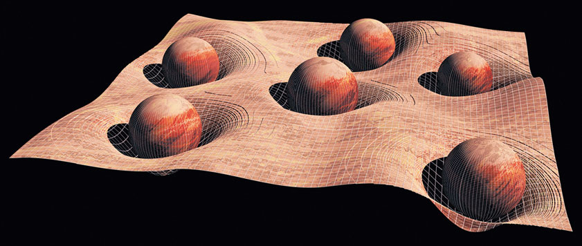 Представления Эйнштейна об искажении пространственно-временного континуума под воздействием массивных тел.