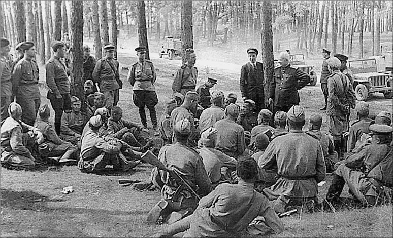 Н.С. Хрущев с советскими солдатами и офицерами во время Великой Отечественной войны