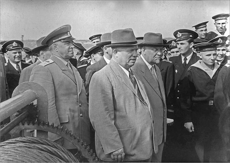 Г.К. Жуков, Н.С. Хрущев, Н.А. Булганин на Тихоокеанском флоте