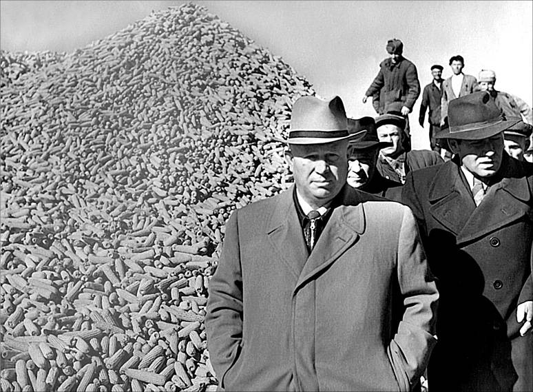 Н.С. Хрущев у бурта кукурузных початков в Ростовской области