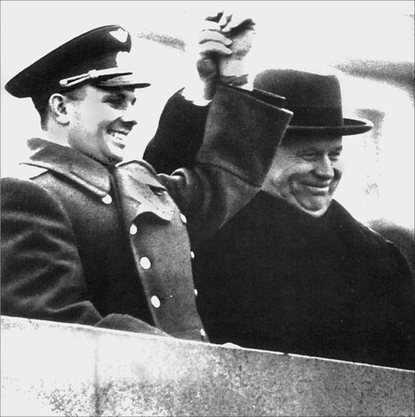 Ю.А. Гагарин и Н.С. Хрущев на Мавзолее. 1961 г.