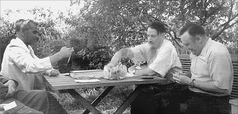 М.В. Келдыш и С.П. Королев в гостях у И.В. Курчатова