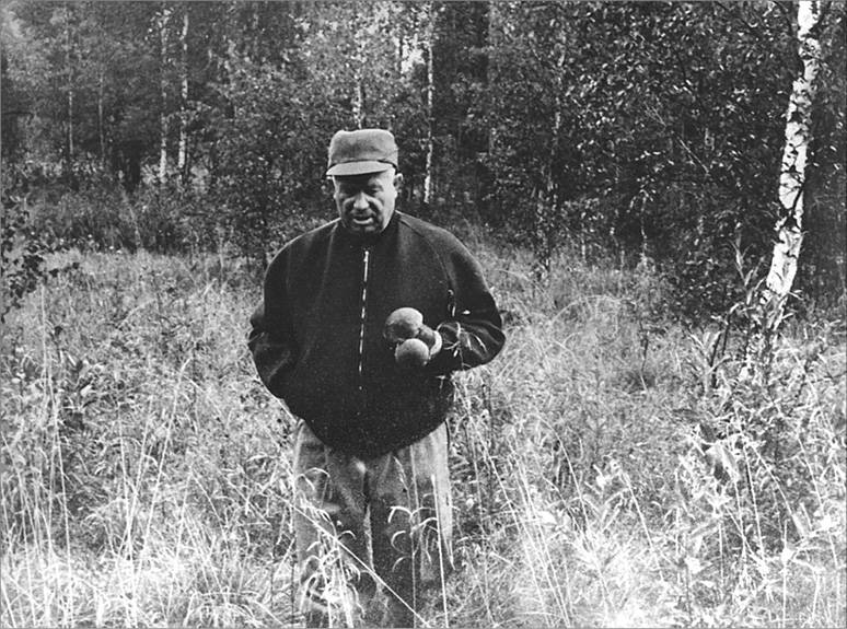 Н.С. Хрущев собирает грибы под Смоленском. 1966 г.