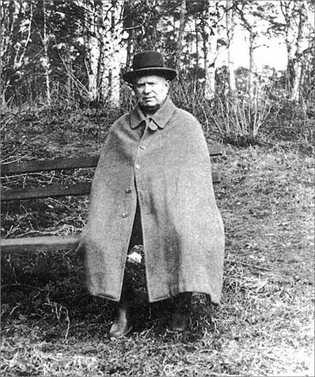 Н.С. Хрущев в Петрово-Дальнем в накидке, подаренной французским текстильным магнатом Буссаком. 1968 г.