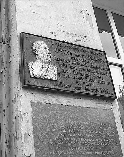 Памятная доска на стенде Донецкого индустриального техникума, где в 1922–1925 гг. учился Н.С. Хрущев