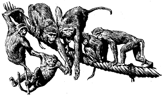Оставив Рикикеш позади, вы попадете в Лахман-Хьюлу, где дорога пилигримов пересекает Ганг с правого на левый берег по висячему мосту. Здесь следует остерегаться красных обезьян, наводняющих мост, так как они еще более назойливы, чем прокаженные Хардвара. Если только не умилостивить их сладостями или поджаренными зернами, то ваш проход по длинному и узкому мосту будет трудным и тягостным.