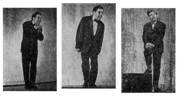 В другой пантомиме — она называлась «Рыболов» — Райкин переходил от молниеносных набросков-зарисовок к более полной характеристике средствами мимического театра образа человека и обстоятельств действия. В этой пантомимической сценке появился уже сюжет. Маленький, не очень еще значительный, но имеющий, однако, завязку, кульминацию и развязку.