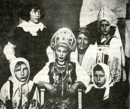 Домашний спектакль «Сказка о мертвой царевне». Ведущая спектакль и режиссер — Нина Ивановна Гаген-Торн, королевич Елисей — дочь Галя, царевна — племянница Алла (Бианки), девушка — Нера Бианки. Январь 1935 г.