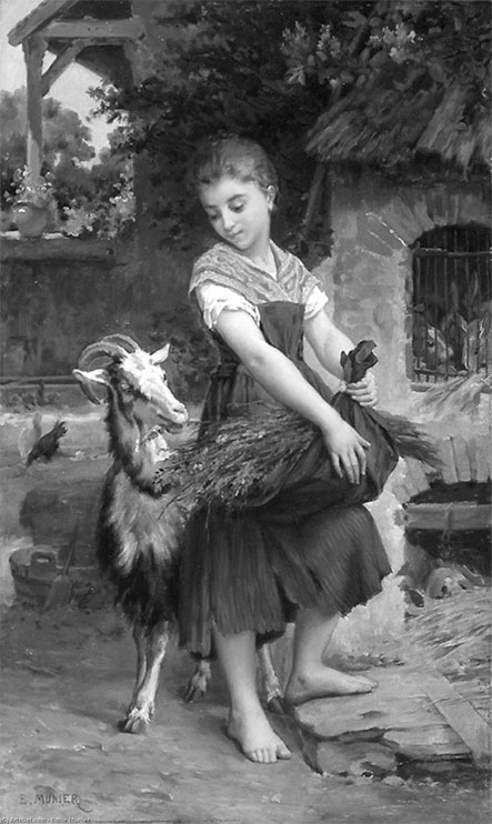 «Девочка с козой и цветами». Художник – Эмиль Мюнье. 1890 г.