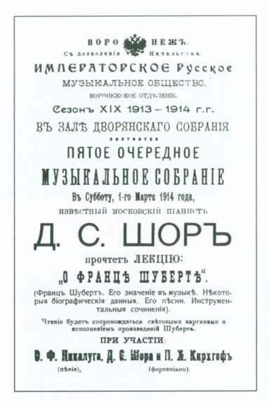 Гастрольное выступление Шора в Воронеже, 1914 г.