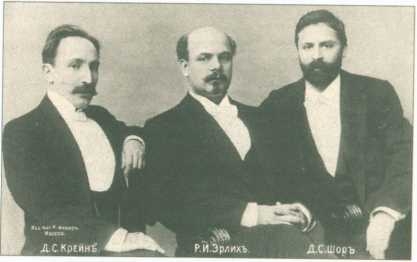 Виолончелиста Альтшуллера, уехавшего в Америку, заменил хороший виолончелист Дубинский (ныне тоже живущий в Америке), а затем уже постоянным нашим неизменным товарищем стал Р. И. Эрлих. В 1907 году я уехал за границу, где предполагал оставаться продолжительное время. Тогда меня заменяли в трио А. Б. Гольденвейзер и хорошая пианистка [Нарбут — Грышкевич]. Но к нашим именам — Шор, Крейн и Эрлих — так привыкли, что перемена не прививалась…