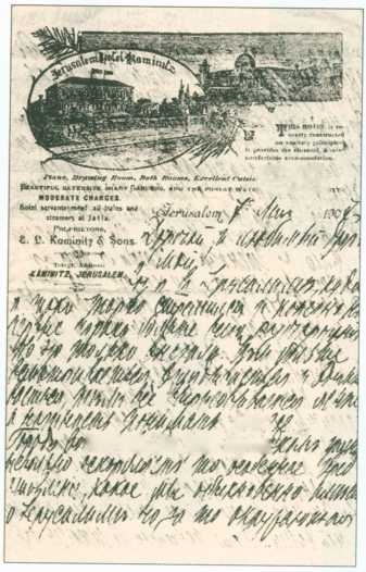Письмо Д. Шора к жене, Р. Шор. Иерусалим, 17.05.1907 Здесь: письмо № 14 в разделе “Письма”