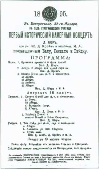 Программа первого исторического камерного концерта «Московского трио» в составе: Д. Шор, Д. Крейн и М. А[льтшуллер].