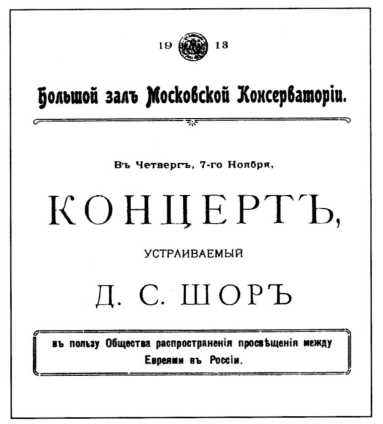 Программа концерта Шора, организованного в пользу Общества распространения просвещения между евреями в России, 1913 г
