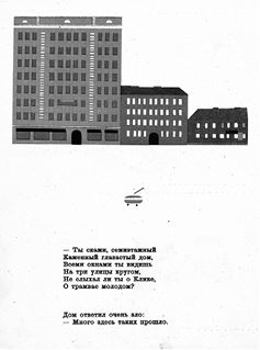 Мы вслушиваемся в стихотворные аллюзии, которые отчетливей слышны на фоне обозначенной в подтексте печальной судьбы Гумилева, и этот гордый собственным величием дом предстает перед нами в неприглядном свете и в более конкретном смысле. Трам обращается к нему по той причине, что тому с высоты прекрасно видно на все стороны, он должен знать, что творится вокруг, и, возможно, знает, что случилось с Кликом. И дом не пытается утверждать, что ему не известна судьба Клика, нет, просто ему наплевать на него, как и на любого другого обитателя города, поскольку случившееся с бедным трамваем здесь – обычное дело. В этом смысле каменный, холодный, неколебимо-бесстрастный дом выступает косвенным виновником преступлений, совершающихся против всех обитателей города, поскольку для него их судьба ничего не значит. Он становится символом безличной, безжалостной власти, которая отказывает в помощи тем, кто пытается разыскать своих таинственно исчезнувших любимых. Таким образом, бдительно следящий за происходящим в городе каменный дом не олицетворяет ли собой тайную полицию, то есть то самое учреждение, которое ответственно за злодейское убийство поэта Николая Гумилева? На иллюстрации Эндера герой представлен рядом с ним крошечной, до предела упрощенной фигуркой, помещенной в самом низу, у основания этого величественного здания, окруженного и другими большими, многооконными домами, холодно и отчужденно, свысока взирающими на его бедственное положение. Рискнем предположить, что совсем не случайно здание КГБ, расположенное на Лубянской площади в Москве, как и зловещее здание в стихотворении Мандельштама, имеет семь этажей и выходит окнами сразу на три улицы. В данном случае Эндер также прибегает к средствам эзопова языка, но уже по-своему, изобразив не семиэтажное, а восьмиэтажное здание, а ряд домов поместив непосредственно рядом с ним, чтобы не было видно, что оно стоит на слиянии трех улиц, и тем самым завуалировав зловещую связь со зданием на Лубянке.