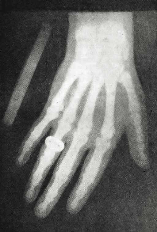 Рентгеновский снимок руки А. С. Попова. 1896 г. (Центральный музей связи имени А. С. Попова.)
