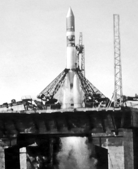 12 апреля 1961 года в 9 часов 7 минут утра стартовал космический корабль «Восток» с летчиком-космонавтом Ю.А. Гагариным. Космический корабль был выведен ракетой-носителем со стартовой массой 287 тонн на орбиту с перигеем 181 километр и апогеем 381 километр. Полет первого космонавта продолжался 108 минут. Приземление космонавта произошло в 10 часов 55 минут на мягкую пашню у берега Волги, вблизи деревни Смеловка Терновского района Саратовской области.
