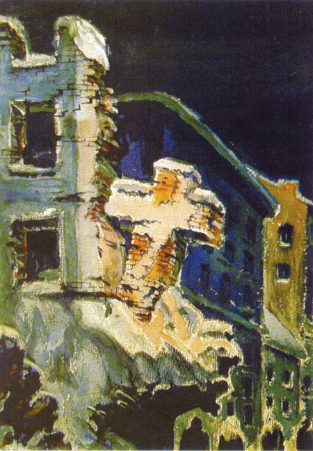 100. К.Ф. Ильченко. Тяжелый крест блокады (акварель, 32.5 х 23).