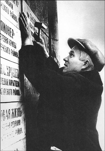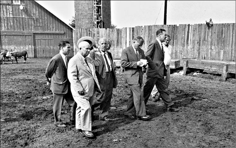 Н.С. Хрущев на Колхозной площади у Доски почета передовых колхозов Московской области. 1936 г.