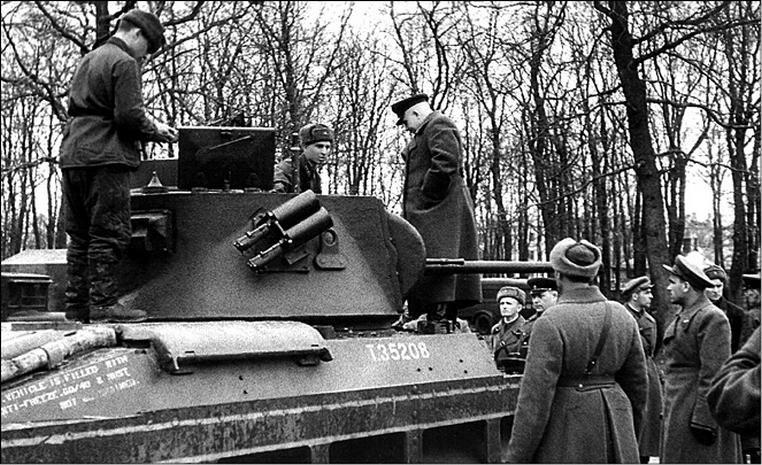 Воронежский фронт, член Военного совета фронта Н.С. Хрущев в танковых частях. 26 апреля 1942 г.