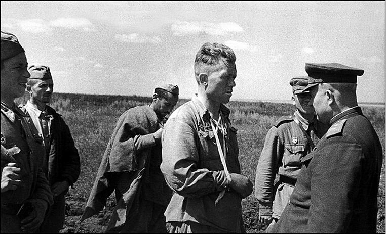 В период Курской битвы (справа с картой – командующий 4-й танковой армией генерал П.А. Ротмистров). Июль 1943 г.