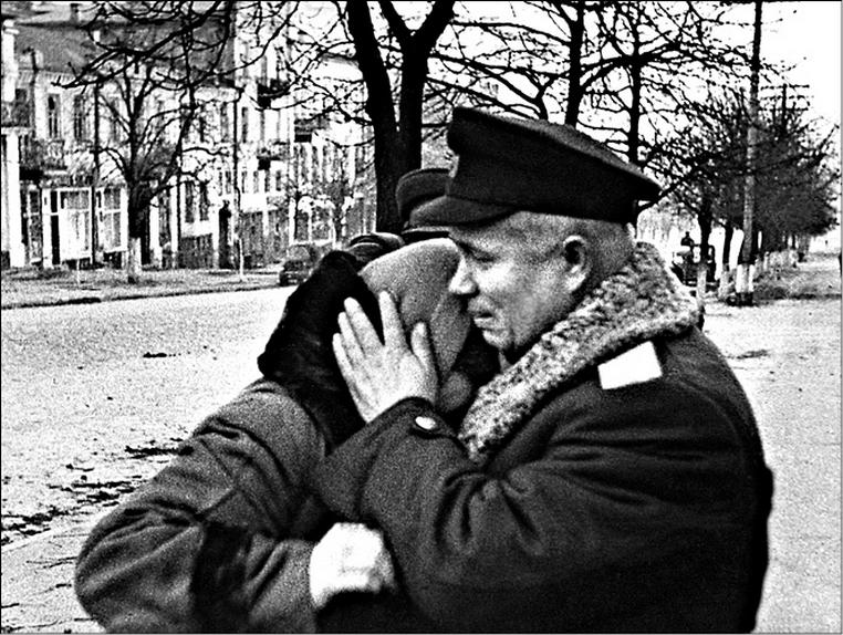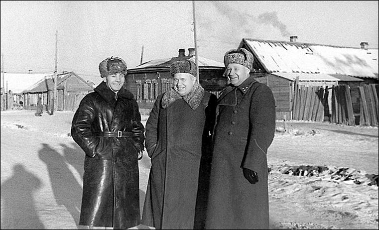 Сталинградский фронт, деревня Бекетовка, Н.С. Хрущев в 64-й армии (справа – командующий армией М.С. Шумилов, слева – член Военного совета армии З.Т. Сердюк). 23 февраля 1943 г.