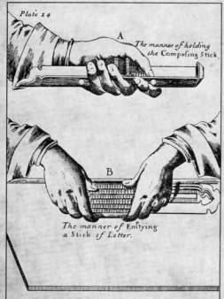 Наборный инструментарий. По Дж. Моксону. 1683 г.