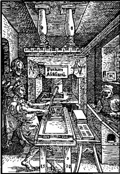 Типографские станы рисуют Лукас Кранах (1520 г.) и Альбрехт Дюрер (1525 г.).