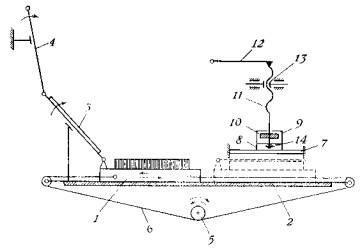 Поясним принцип действия типографского стана кинематической схемой. Наборная форма заключена в раме, установленной на каретке 1, которая имеет возможность возвратно-поступательного движения вдоль поверхности стола 2. К каретке шарнирно прикреплена декельная рамка (тимпан) 5, а к последней — рамка (фрашкет) 4, предохраняющая поля оттиска от попадания краски. Декельная рамка затянута листом пергамена, выравнивающим натиск. На рамке закреплены иголки-пунктуры, на которые накалывают лист бумаги. После этого на декельную рамку опускают фрашкет, а затем декельную рамку с фрашкетом накладывают на наборную форму и с помощью рукоятки приводят во вращение цилиндр 5. Последний при помощи шнуров 6 перемещает каретку под нажимную плиту (тигель) 7. Тигель подвешен на шнурах 8 к буксе 9 (на Руси ее называли «орех»), которая подвижно установлена на цилиндрическом выступе 10, жестко скрепленном с винтом 11. При перемещении нажимного рычага 12 винт, смещаясь в гайке 13, своей нижней, лишенной нарезки частью 14 прижимает тигель к листу, лежащему поверх набитой краской формы. При обратном движении рычага (на Руси его называли «кука») букса смещается вверх и поднимает тигель, подвешенный на шнурах. Затем каретку выводят из-под тигля, раскрывают ее и снимают готовый оттиск с пунктур.