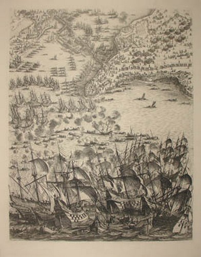 Осада Ла-Рошели. Стычка французского флота с англичанами. Гравюра Ж. Калло. Не позднее 1635 г.