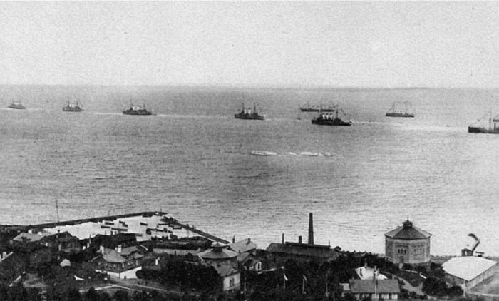 Корабли Балтийско-Цусимской эскадры покидают Ревель.