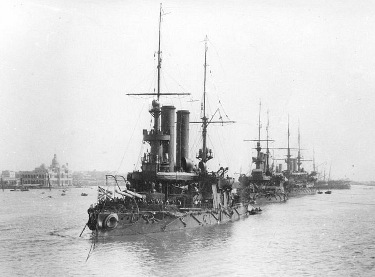 Броненосцы "Адмирал Ушаков", "Адмирал Сенявин", "Генерал-Адмирал Апраксин" идут на соединение с эскадрой Рожественского (Порт-Саид, 1905 г.)