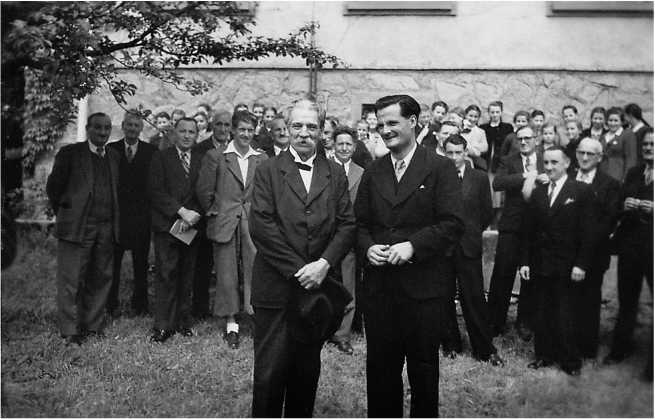 Шарль Митчи и Альберт Швейцер после концерта мужского хора деревни Гюнсбах, 1952 год