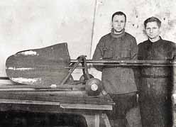 М. Л. Миль и С. А. Пехтин у реактивного ружья.