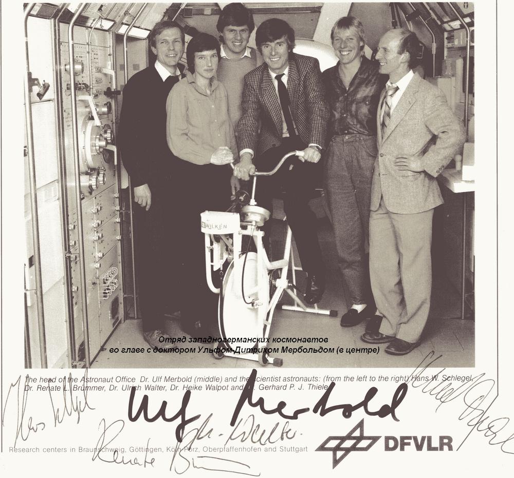 Д-р фон Крис оформил мне допуск для посещения немецких космических центров, включая центр подготовки немецких астронавтов. Познакомил с готовящимися космонавтами и первым западногерманским космонавтом, начальником центра подготовки доктором Ульфом Дитрихом Мербольдом – первым неамериканским астронавтом, совершившим полет на борту космического корабля Колумбус, и первым астронавтом, проведшим научные эксперименты на борту Спейслаб 1, а также с астронавтом Эрнстом Мессершмидом, совершившим полет на корабле Челленджер.