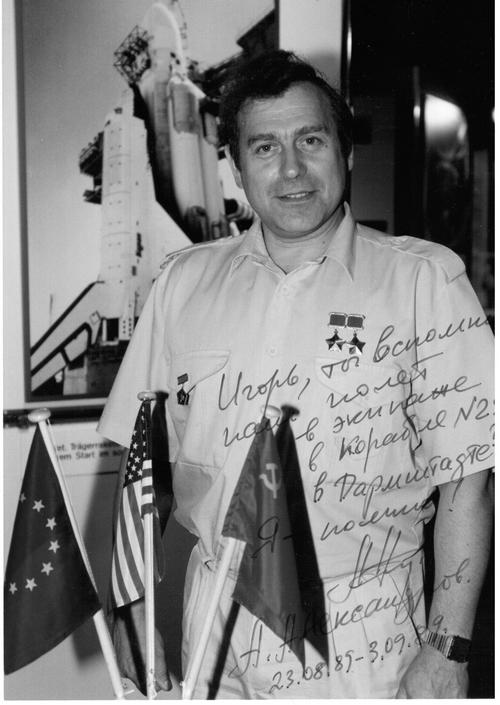 Сразу после авиасалона в Ле Бурже к нам на фирму обращаются бургомистр и президент торговой палаты города Дармштадт с просьбой принять участие в ежегодно проводимой у них в городе выставки для молодежи Найди свою профессию. Дело в том, что в текущем году основной упор этой ярмарки профессий был направлен на изучение космоса. Такое же предложение было сделано и отделу пропаганды Посольства США, которые подтвердили участие и обещали прислать двух американских астронавтов из числа готовящихся к полету. Дармштадт обещал взять на себя все расходы по оформлению стенда и по нашему проживанию в гостинице. Вместе с Посольством удалось уговорить Главкосмос и НПО Энергия направить нам макет первого спутника и выделить для участия одного их космонавтов. Им оказался Александр Павлович Александров – дважды Герой Советского Союза, к тому времени имевший рекорд длительности общего пребывания в космосе.