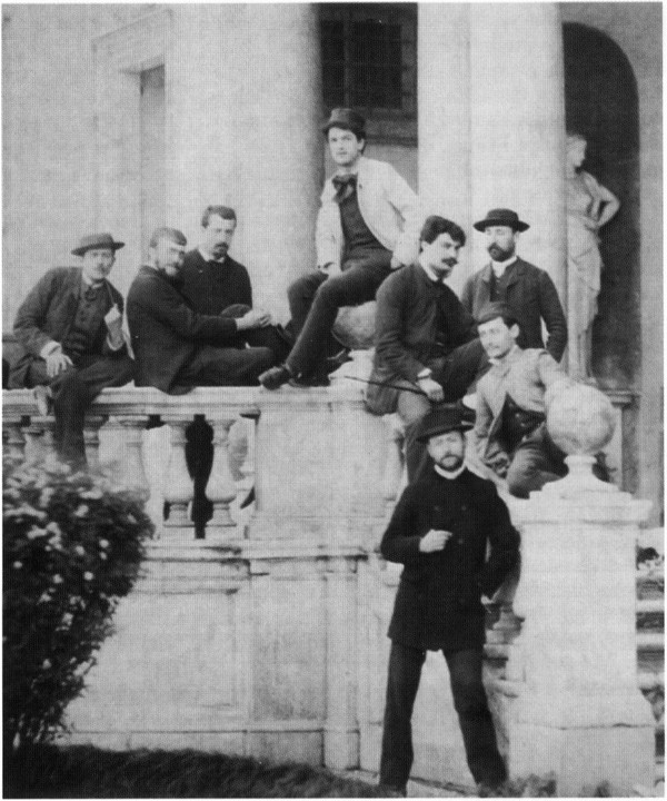 Дебюсси (сидит наверху в белой куртке) на вилле Медичи. 1885 г.