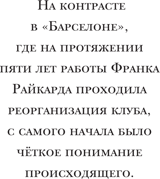 Такое же отношение применимо и к Франку де Буру. Он не получал помощи, поддержки или советов от кого-либо и посему так упорно следовал видению игры, которое оставалось непонятным мне и многим болельщикам «Аякса». Но в организации, не способной по максимуму раскрыть сильные стороны людей, тяжело придётся даже тренеру. Для меня сегодня образец для подражания в плане игры – это «Барселона» и «Бавария», а в «Аяксе» подобного почти нет, что само по себе иронично, ведь эти два клуба больше всех остальных вдохновлялись «Аяксом», и посмотрите, насколько они сегодня успешны. Но если твой родной клуб больше не имеет желания следовать тем же путём и не видит своего будущего в нём, то тебе нужно поступить честно и просто отойти в сторону.