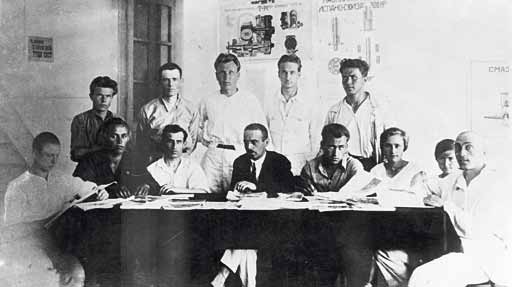 Авиамодельный кружок, Михаил Миль сидит третий справа.