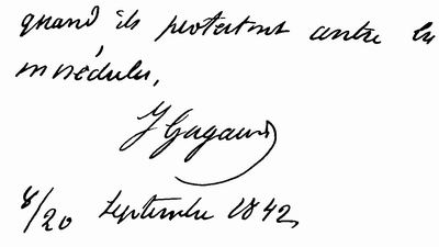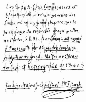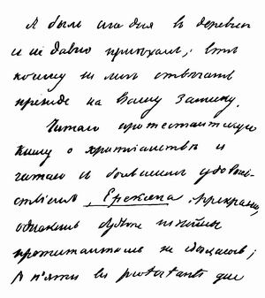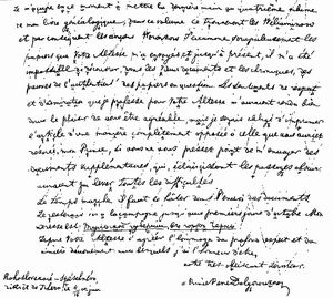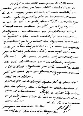Почерк барона Луи де Геккерена (письмо к Жоржу Дантесу, обнаруженное в архиве III отделения в 1917 году — см. стр. 277—278. Ныне в собрании Пушкинского дома)