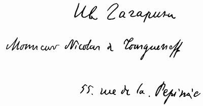 Конверт письма к Н. И. Тургеневу (Собственноручная надпись кн. И. С. Гагарина; хранится в рукописном отделении Академии наук СССР)