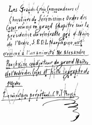 Однако известный эксперт французского императорского двора Delarue, в 1861 году, совершенно правильно установил тождество почерка в этом письме с почерком князя Долгорукова.