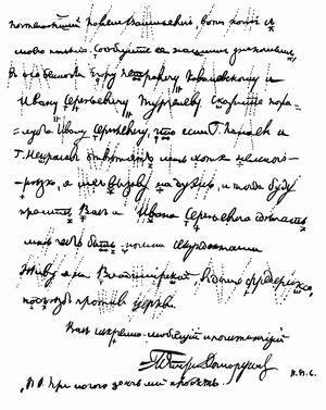 Русский почерк кн. И. С. Гагарина (Письмо к Н. И. Тургеневу; хранится в рукописном отделении Академии наук СССР)