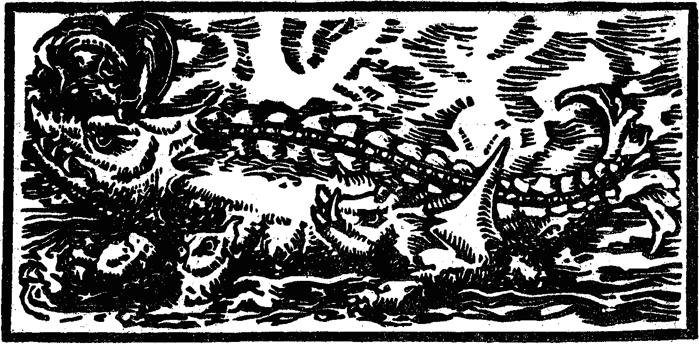 «Можешь ли ты удою вытащить левиафана и веревкою схватить язык его? Вденешь ли кольцо в ноздри его? Проколешь ли иглою челюсть его? Можешь ли пронзить кожу его копьем и голову его рыбачьею острогою? Кто может открыть верх одежды его, кто подойдет к двойным челюстям его? Круг зубов его — ужас. От его чихания показывается свет; глаза у него как ресницы зари. Из ноздрей его выходит дым, как из кипящего горшка или котла. Железо он считает за солому, медь — за гнилое дерево. Он кипятит пучину, как котел, и море претворяет в кипящую мазь. Оставляет за собой светящуюся стезю; бездна кажется сединою. На все высокое смотрит смело; он царь над всеми сынами гордости». Это была цитата из Библии (Книга Иова, главы 40, 41).