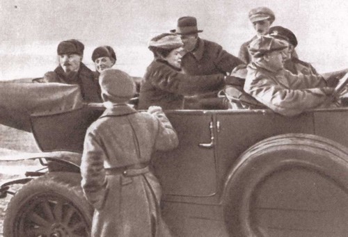 В. И. Ленин, Н. К. Крупская и М. И. Ульянова уезжают с Ходынского поля после военного парада в честь 1 Мая. Москва, 1918 г.